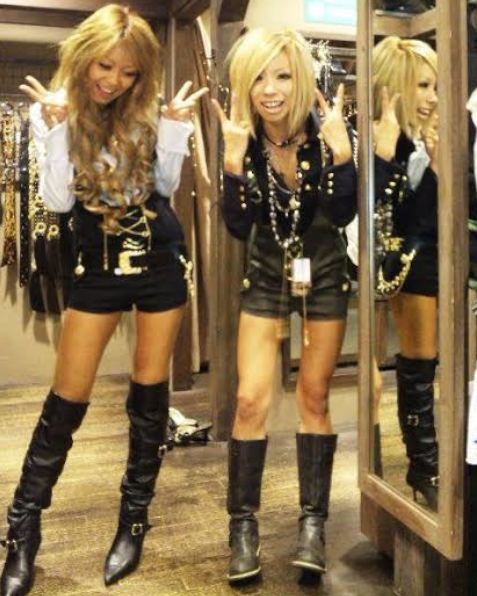 Aristocrat and gyaruo can seem like opposites. They each have a mature, sleek style founded in designer brands and luxury fabric— What aristocrat lacks in color it makes up for rich velvets and laces. Some gyaruos wore a lot of designer labels to express that specific look of a wealthy rockstar. These two were anything but modest; they are flashy and confrontational. Everything I could want and inspire from in fashion.